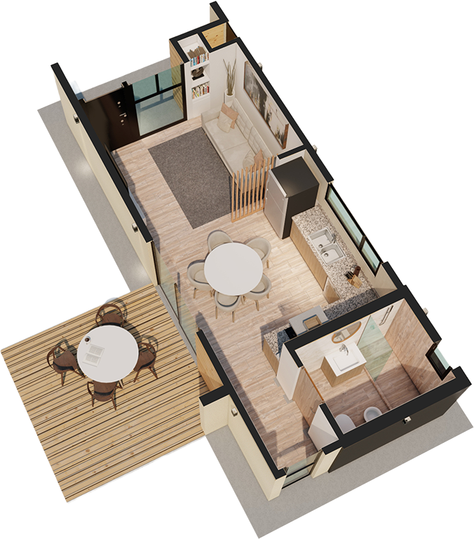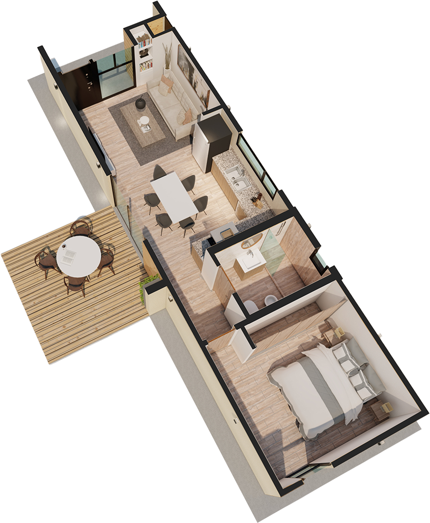50 m² | 2 ambientes | Cocina-comedor-living integrados | 1 dormitorio | 1 baño